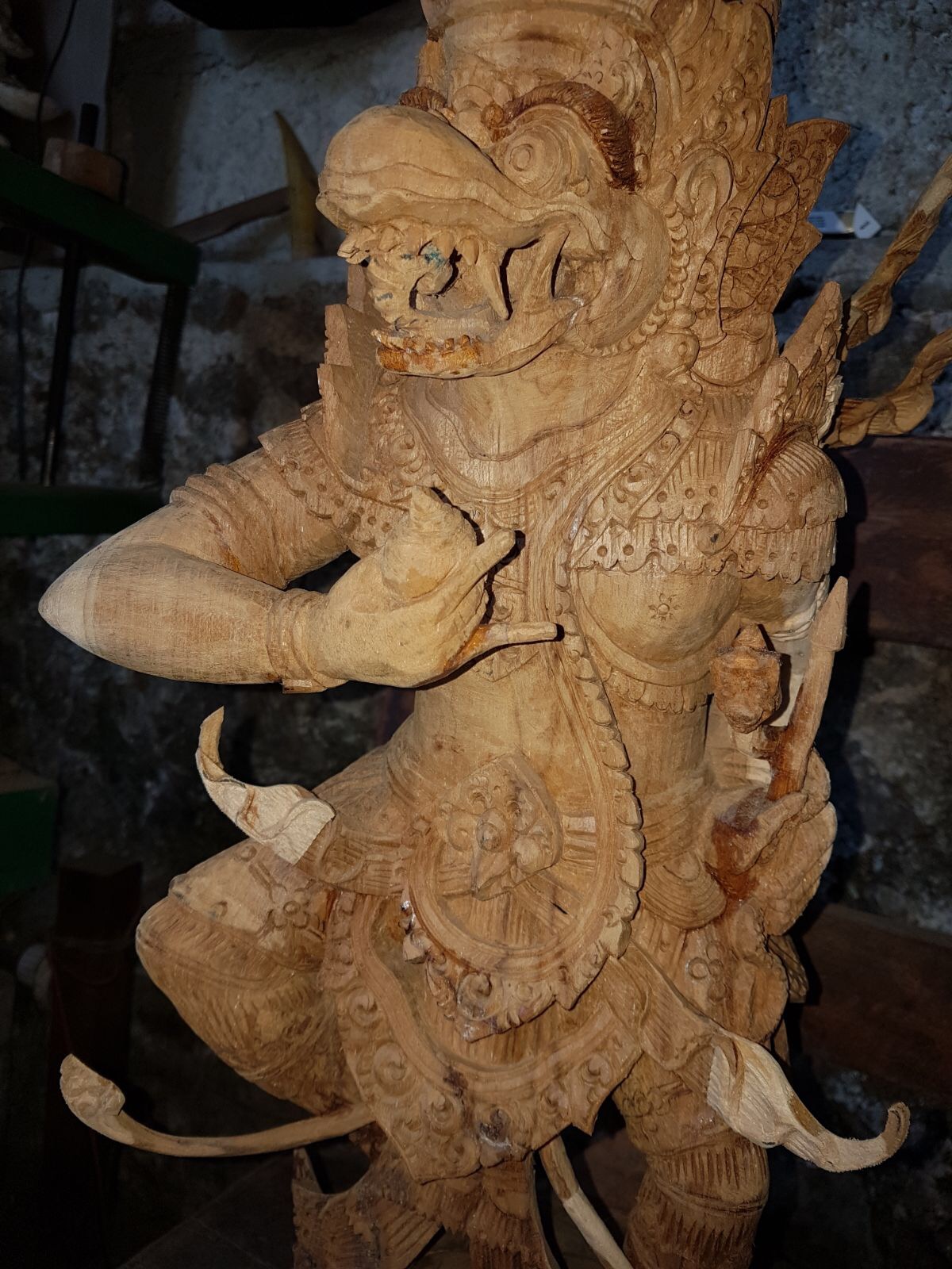 It is a beautiful statue of the God Baruna who is worshiped by the Balinese people as the God of the sea. The Balinese people pray to him to get rid of their diseases as well as after the death, the dead body is thrown into the sea and Baruna god is prayed to cleanse their soul and re-send them back again. Read more. Written March 4, 2019.