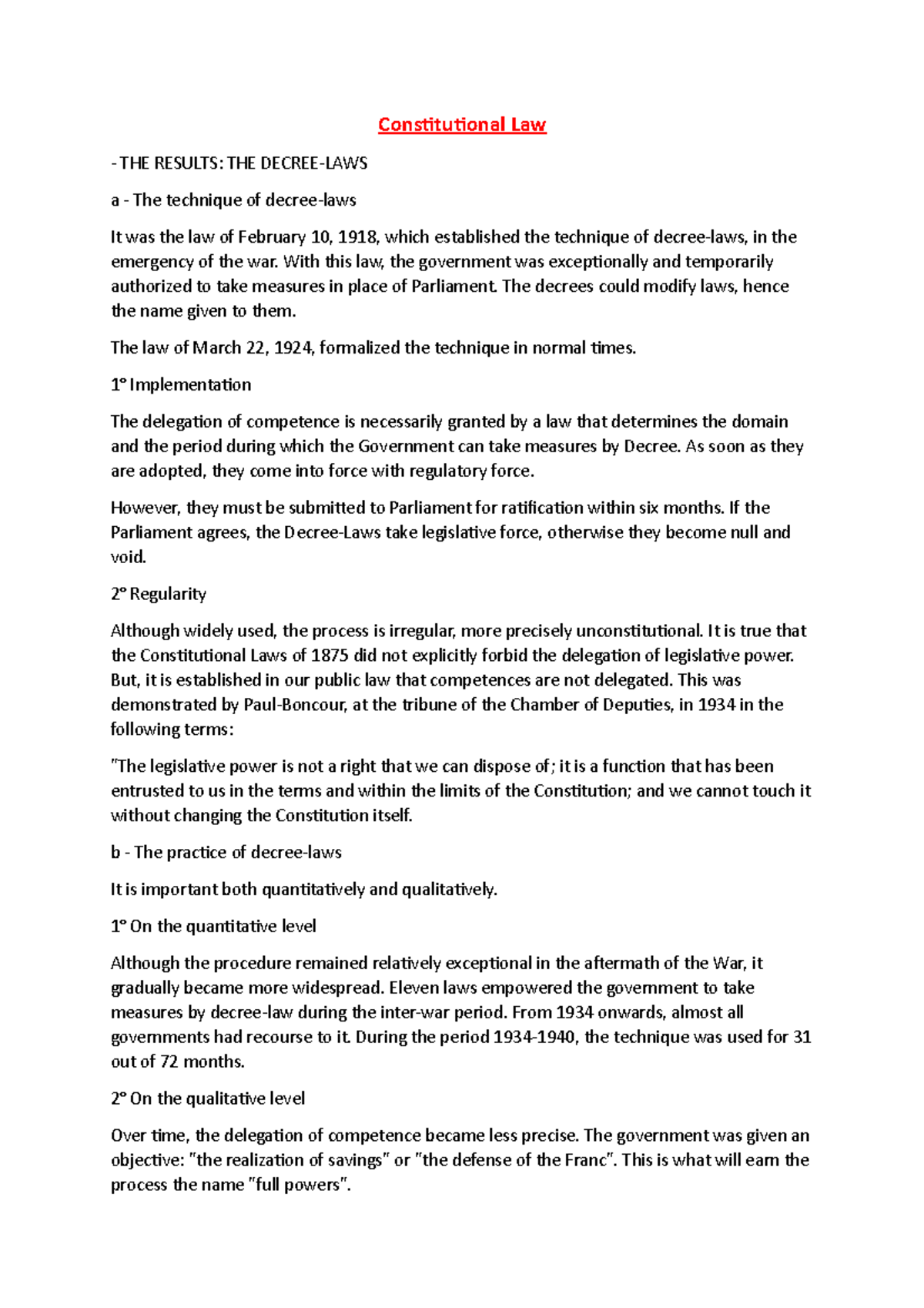 Constitutional Law 29 Constitutional Law THE RESULTS THE DECREELAWS a The technique of