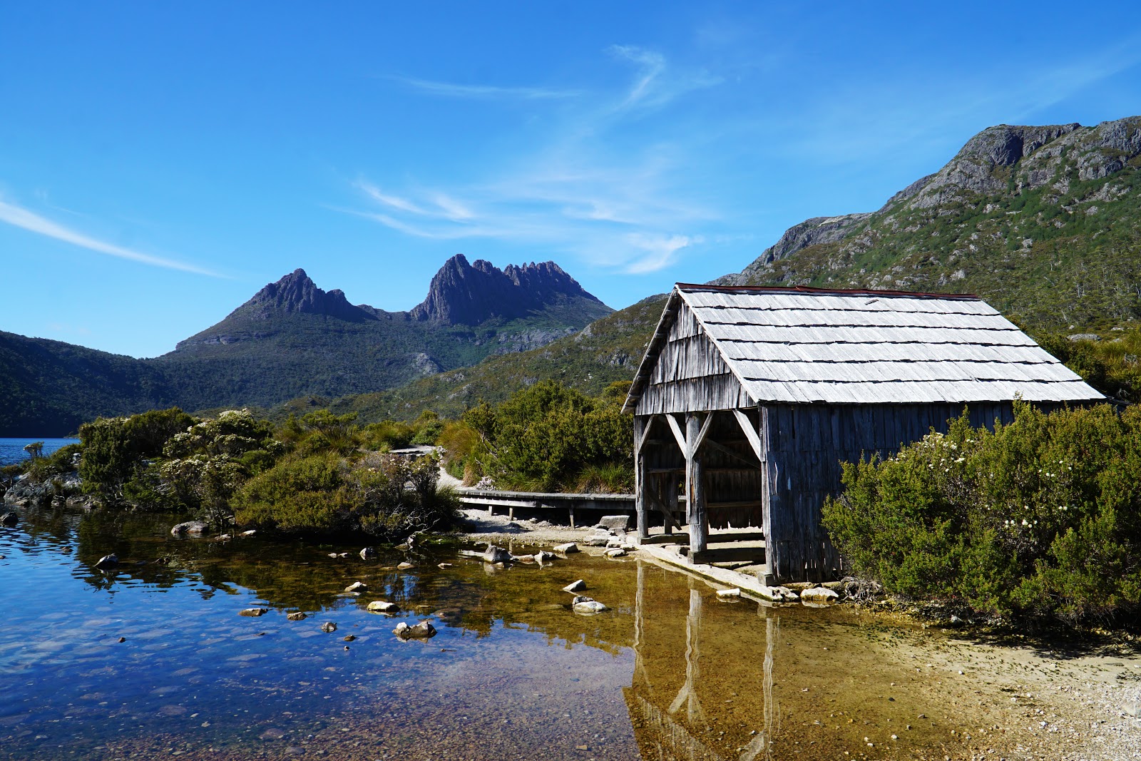 Cradle Mountain. Tasmania's famously bowed mountain, Cradle Mountainrises steeply from the shores of Dove Lake, creating a spectacular scene from Marions Lookout or the lake edge. Lake St Clair. Australia's deepest lake is fringed with mountains and cool-temperate rainforest, offering excellent short walks or simply wilderness lake views.