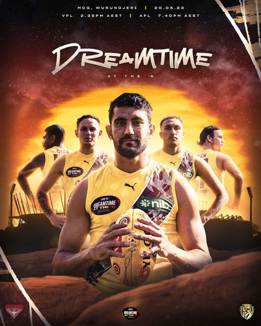 AFL 2023 DREAMTIME AT THR G TICKETS - ESSENDON V RICHMOND. About. Dreamtime at the 'G is an annual AFL match between Essendon and Richmond played at the Melbourne Cricket Ground (MCG).. The name of the match comes from the Aboriginal term "Dreamtime" and "the 'G", a nickname for the MCG where the match takes place.Since the 2007 season the match has been held annually on the Saturday night of.