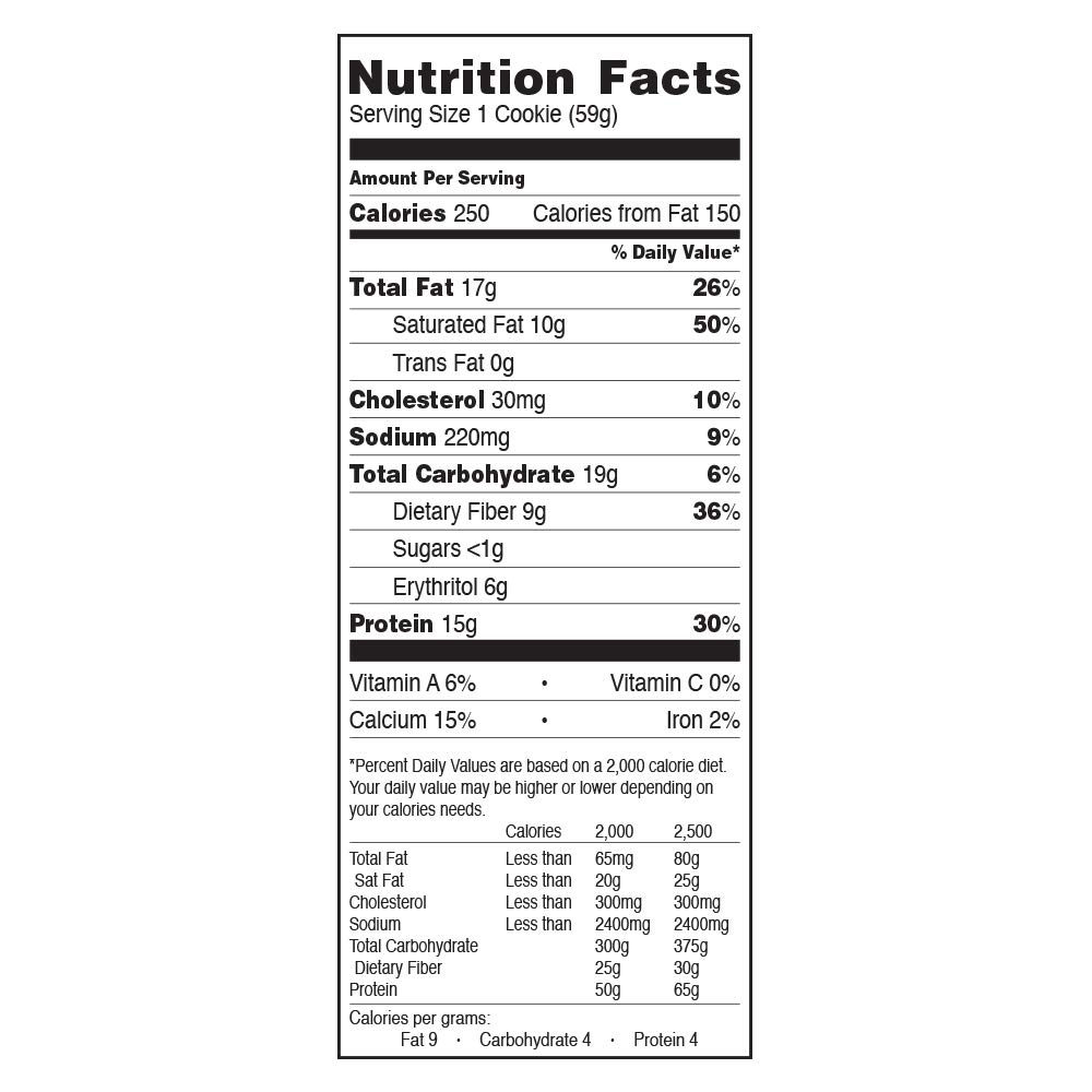BIG Chocolate Chip Cookie Nutrition Label Sweet Girl Cookies