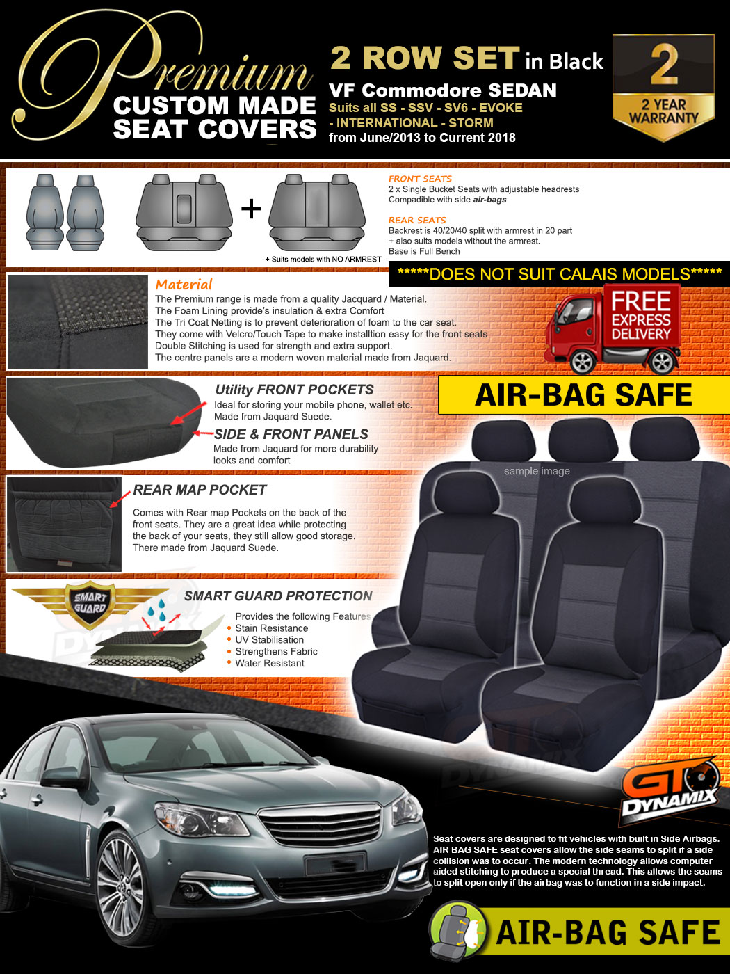 Premium Black VF Commodore Sedan Seat Covers 2ROW SET SS SSV SV6 EVOKE 6/201318 eBay