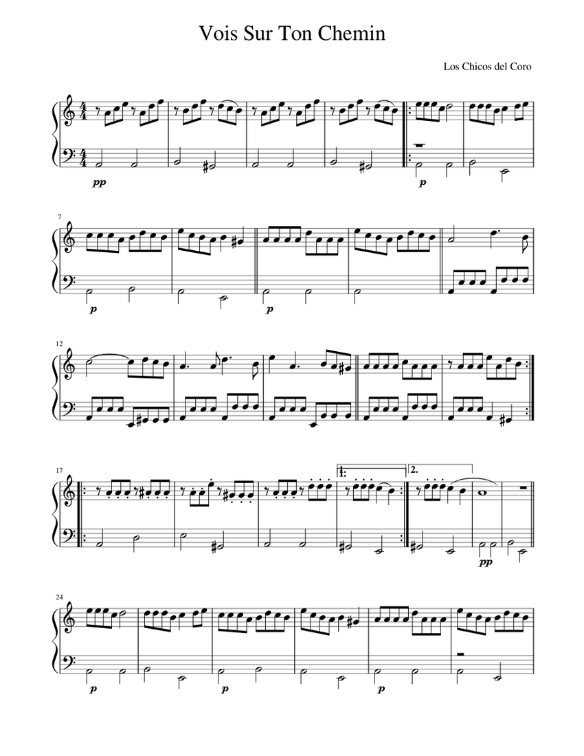 Vois Sur Ton Chemin Piano Sheet music for Piano Download free in PDF or MIDI