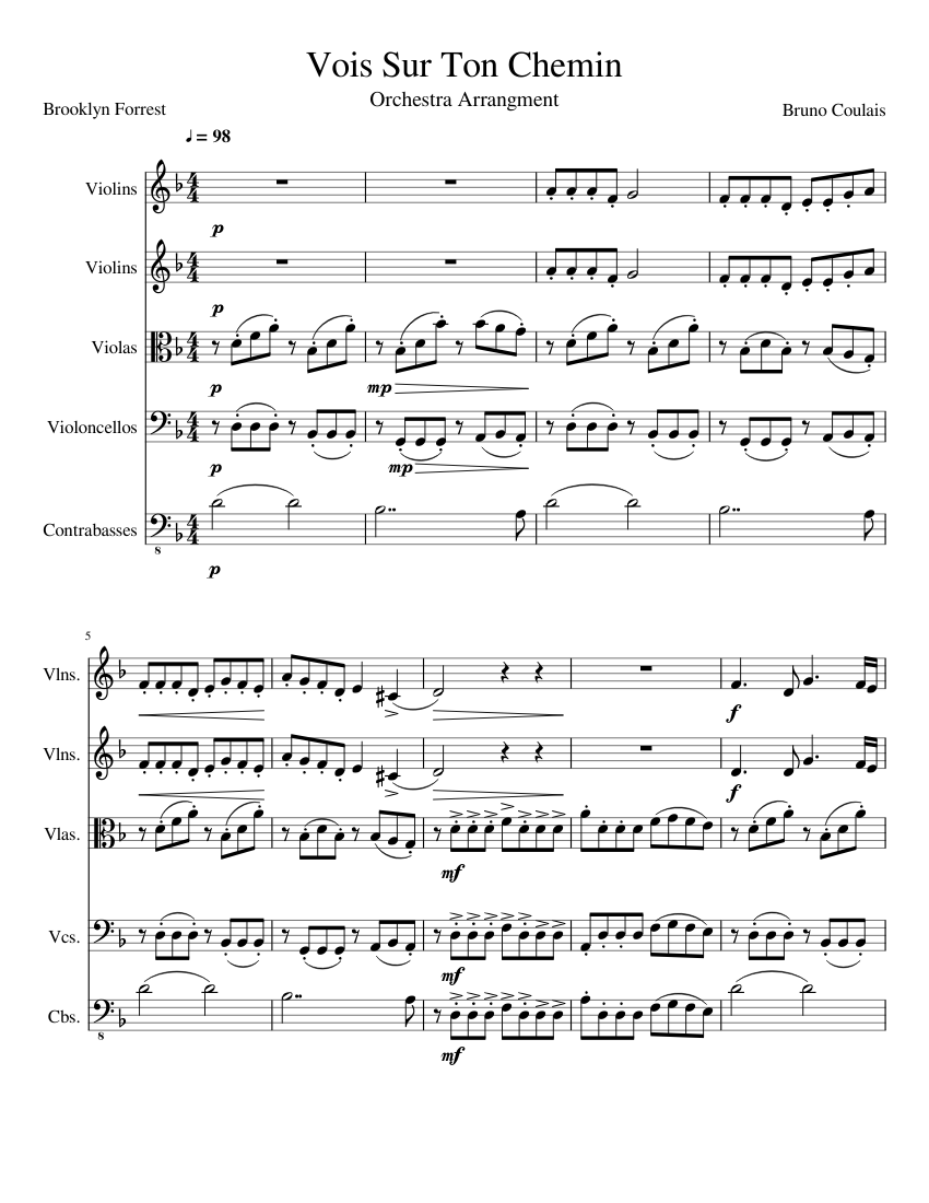 Vois Sur Ton Chemin Orchestra Sheet music for Strings Download free in PDF or MIDI