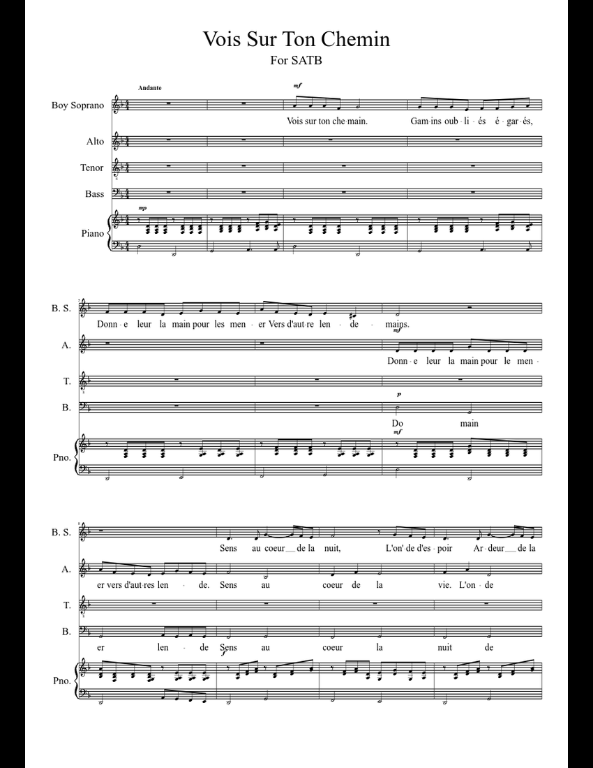 Vois Sur Ton Chemin sheet music for Piano, Voice download free in PDF or MIDI